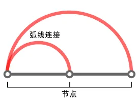 弧线图 (Arc Diagram) 是二维双轴图表以外另一种数据表达方式。在弧线图中,节点将沿着 X轴放置,然后再利用弧线表示节点与节点之间的连接关系。