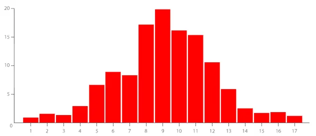 这种图表是直方图的变种,使用平滑曲线来绘制数值水平,从而得出更平滑的分布,并且它们不受所使用分组数量的影响,所以能更好地界定分布形状 。