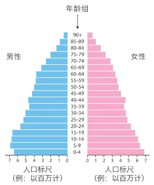 人口金字塔 (Population Pyramid) 也称为「年龄性别金字塔」,是彼此背靠背的一对直方图,显示所有年龄组和男女人口的分布情况。