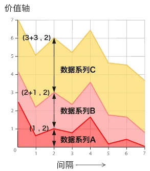 两种较常用的面积图是分组式面积图和堆叠式面积图。分组式面积图在相同的零轴开始,而堆叠式面积图则从先前数据系列的最后数据点开始。