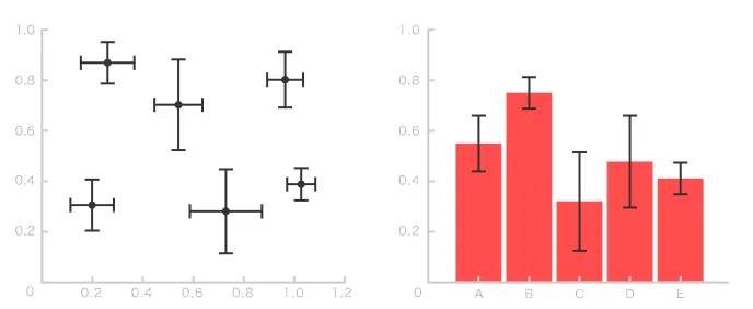 误差线可以作为一项增强功能来显示数据变化,通常用于显示范围数据集中的标准偏差、标准误差、置信区间或最小/最大值。