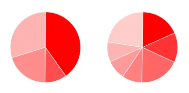 不等宽柱状图的主要缺点在于难以阅读,特别是当含有大量分段的时候。此外,我们也很难准确地对每个分段进行比较,因为它们并非沿着共同基线排列在一起。