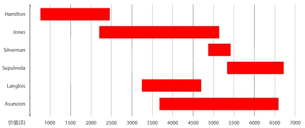 跨度图只集中显示极端数值,不提供任何关于最小值和最大值之间的数值、整体平均值或数据分布等其他信息。