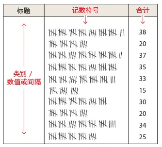 记数符号图表 (Tally Chart) 既是记录工具,也可通过使用标记数字系统来显示数据分布频率。
