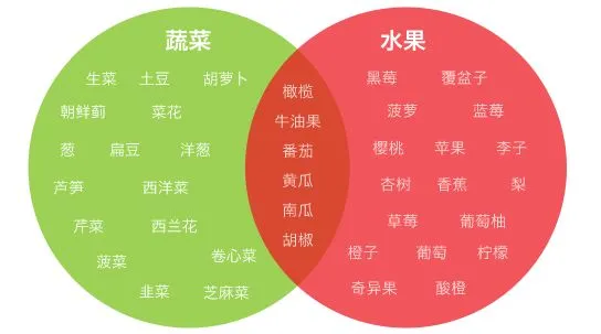 每个集都是一组具有共同之处的物件或数据,当多个圆圈(集)相互重迭时,称为交集 (intersection),里面的数据同时具有重迭集中的所有属性。