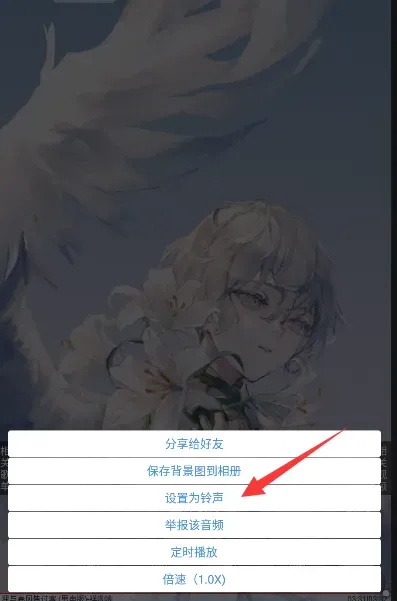 3、然后就可以选择设置为铃声、消息提示、闹钟铃声。