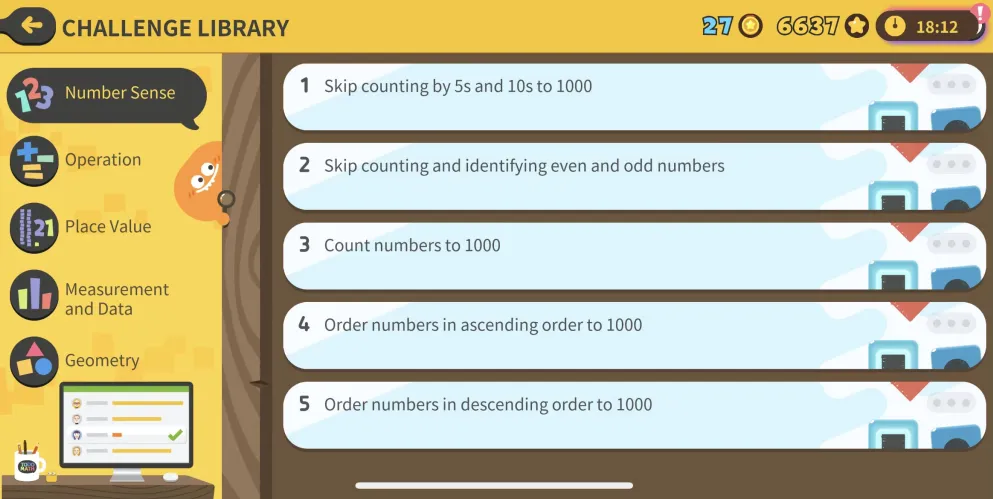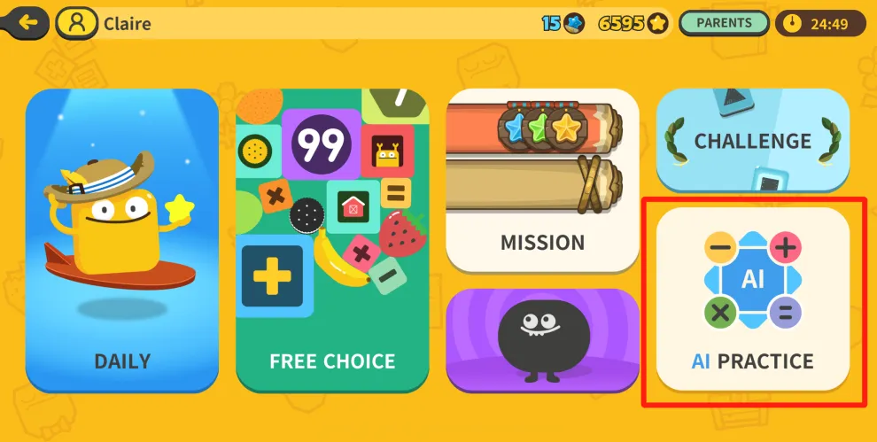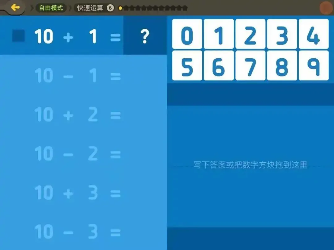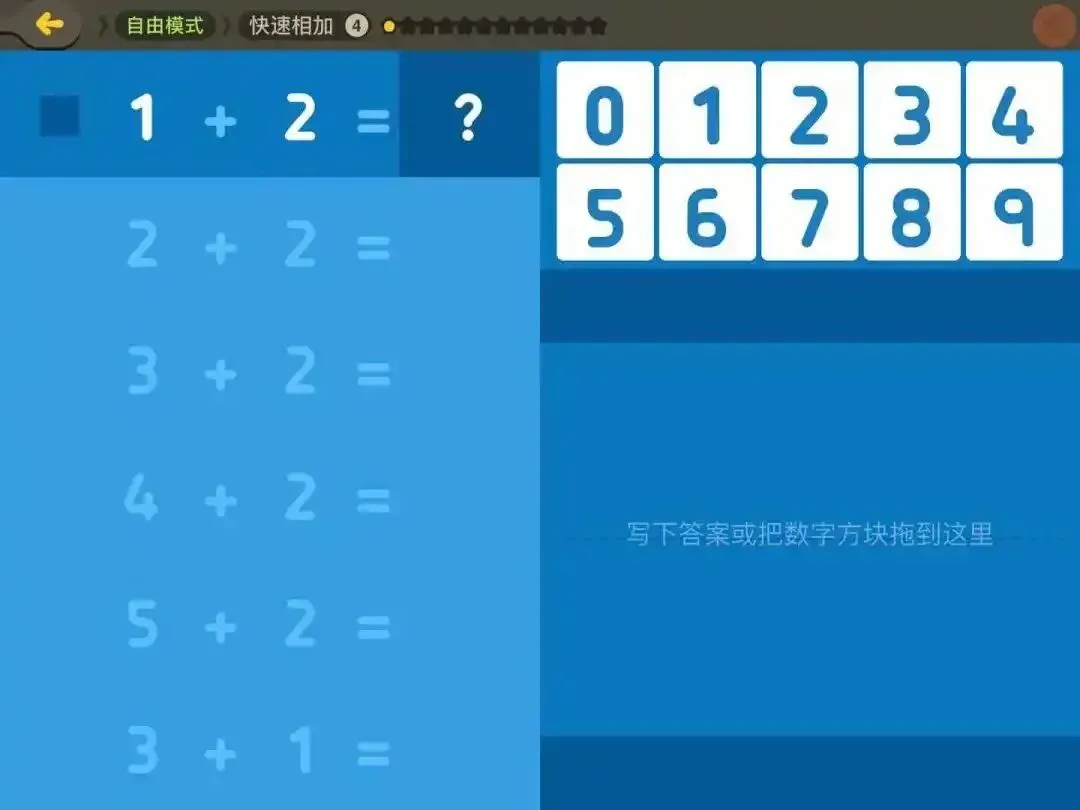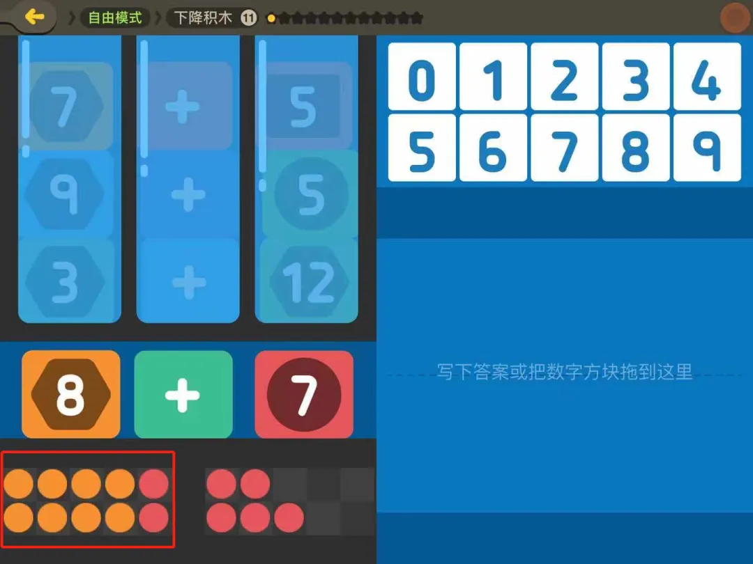 上面这个选择可以是“4x9”,也可以是“6x6”,它不是直接训练孩子乘法,而是让她们试着用图形化的方式去表示乘法,这就是训练孩子对于数字感知的能力。