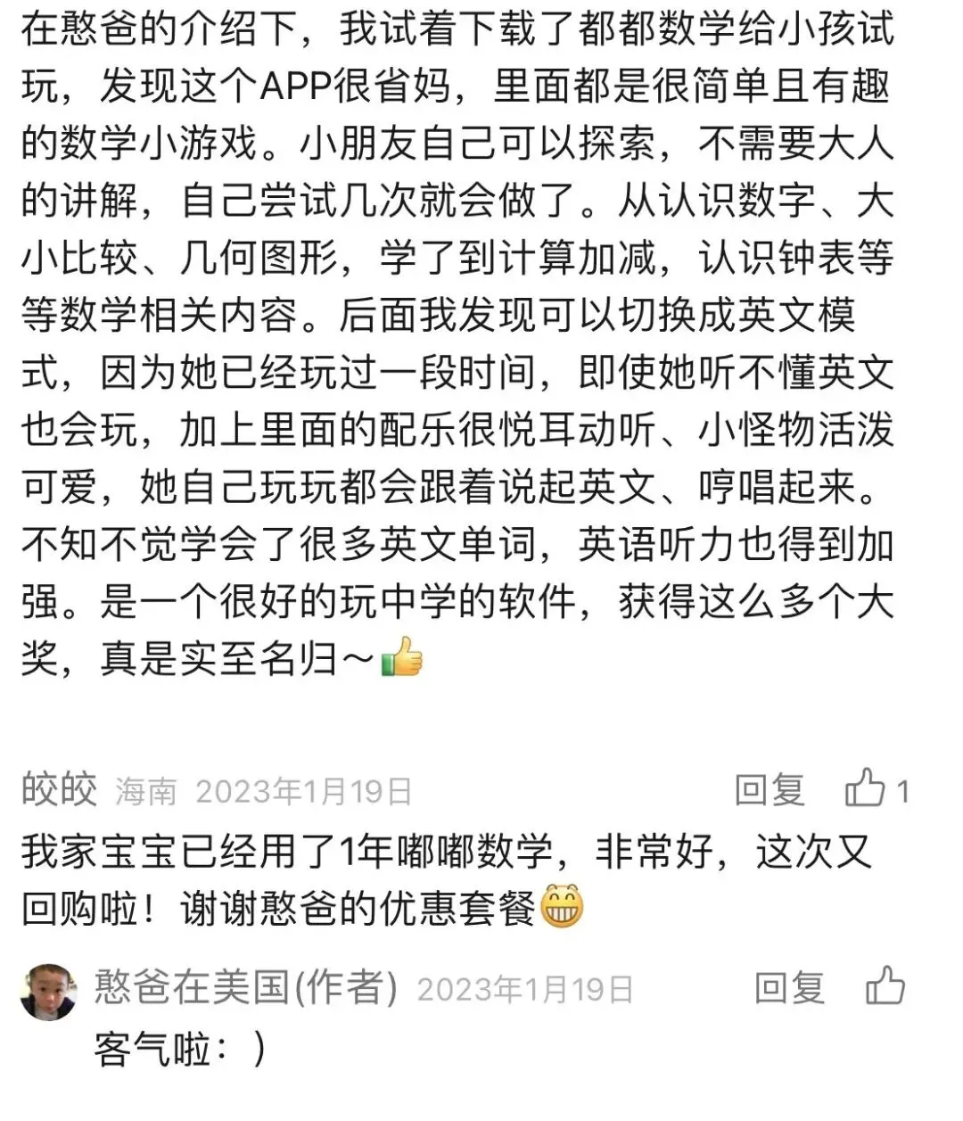 所以,我建议你们先下载“都都思维”这款App给孩子试用几天,如果她们真的有兴趣,大家再考虑购买也不迟!