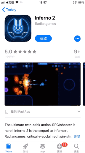 如果你当前没有WiFi,可以点击“获取”来下载软件,然后在桌面点击正在下载中的图标,进行暂停,等待有WiFi 后再下载,以免错过限免。