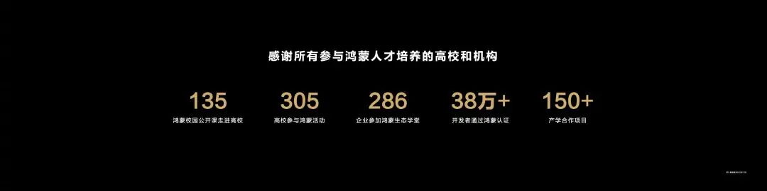 华为与学界对于技术结合学术的趋势把握均是超前与高效的。据统计,包括清华大学、哈尔滨工业大学、西安交通大学等在内的23家985高校、46家211高校都已经或即将开设鸿蒙相关课程。其中,南京大学开设了《移动互联网软件工程》课程,并以HarmonyOS作为课程核心,替换了原有的安卓开发课程。截至目前,已经有超过300所高校与华为共同培育鸿蒙生态建设人才,此外,有135余所高校开设鸿蒙公开课、200余家企业设立并参加鸿蒙生态学堂、超过38万位开发者通过鸿蒙认证,已经落地的鸿蒙产学合作项目则超过了150个。这次有100多家高校通过官方微博与鸿蒙生态互动助力,形成与高校共建鸿蒙生态的拥抱氛围。学界之外,在业界,华为对开发者的投入与扶持步履不停,其中包括2020年投入10亿元激励开发者创新的“耀星计划”,2022年对接入鸿蒙元服务、华为支付等方面开发者伙伴的激励增加,以及2023年面向鸿蒙原生适配伙伴提供资源扶持的“鸿飞计划”等等。鸿蒙千帆启航仪式上,“耀星计划”升级至70亿+人民币。这不是华为在简单的利益驱动下集结多方力量成就鸿蒙,而是基于正向的商业闭环和宏观的时代需求,调动各个环节上的重要参与者,强化人才储备,共同打造属于国产应用生态的自主创新时代。从这一点看来,华为对于鸿蒙生态的发展是落在人才体系的根上。这家企业信奉的是,不但要从需求端扩大生态,还要从供给端确保产业生态的平衡和可持续,在全社会维度下达成业界与学界对鸿蒙的拥抱与建设。在填补人才这一短期需求之后,鸿蒙的视野已然覆盖到产业与社会深层。在产、学、研各界的共同投入下,鸿蒙生态的蓬勃意味着社会岗位的增加与就业形势的积极,这将赋予产业最根本和旺盛的生命力。相关机构初步分析,在中国需要数百万鸿蒙开发者,其发展意义已经超越自身在产品层面的意义,成为一种社会发展力量和一股不可逆的时代洪流。星光簇拥之下,一条璀璨星河终于汇成。鸿蒙生态的全速启航已成定局——这场有关生态共建的万里新征程,将立足中国,迈向全球。