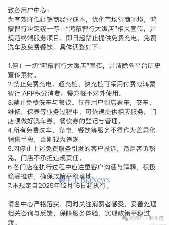 停了!鸿蒙智行“免费吃食堂”突然喊停,车主们集体炸锅——充30万送车的福利,说没就没了?