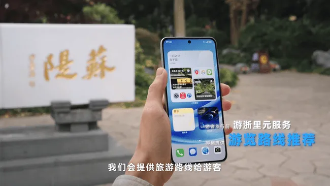 在文旅场景,HarmonyOS的近场服务展现了其“主动智能”的魔力。以“游浙里”元服务为例,它依托HarmonyOS的软硬协同能力,结合POI与信标(Beacon),能在游客的游览动线中精准触发服务。如,当游客抵达景区,自动推送最佳游览路线;在苏堤漫步,距洗手间数百米时即收到提醒;行程结束,适时推荐周边美食。