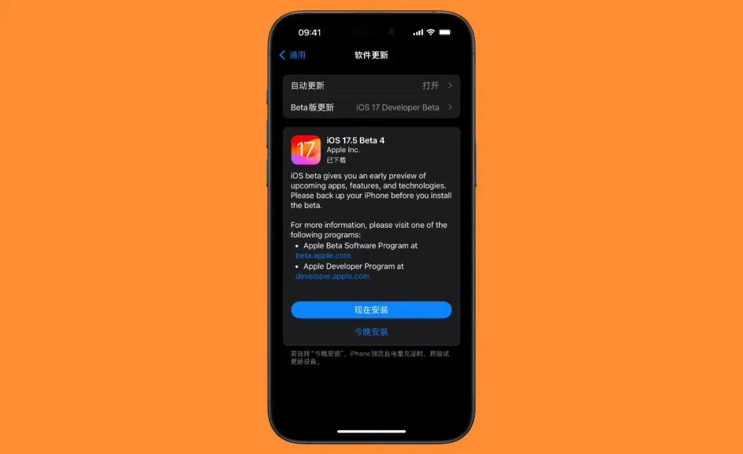 首先是苹果在本周三(5 月 1 日)凌晨发布的 iOS 17.5 Beta 4 版更新,版本号为 21F5073b。以 b 为结尾通常意味着 RC 版将近,考虑到 5 月 7 日的苹果发布会,iOS 17.5 正式版预计也将很快到来。此前已经更新了 iOS 17 测试版的小伙伴,现在就可以去升级最新的测试版系统了。想尝鲜 iOS 17 的小伙伴,可以进入果粉俱乐部公众号,点击右侧下方的「发消息」,回复关键词「iOS 17」获取尝鲜教程。按照操作免费注册 Apple 开发者计划,然后进入 iPhone「设置」—「通用」—「软件更新」中,将「Beta 版更新」设置为「iOS 17 Developer Beta」即可。根据苹果发布的官方更新日志,以及小果的实际体验来看,苹果在 iOS 17.5 Beta 4 中带来了一个新功能。通常来说,iPhone 在送往官方维修时,用户首先需要关闭设备的「查找」功能。