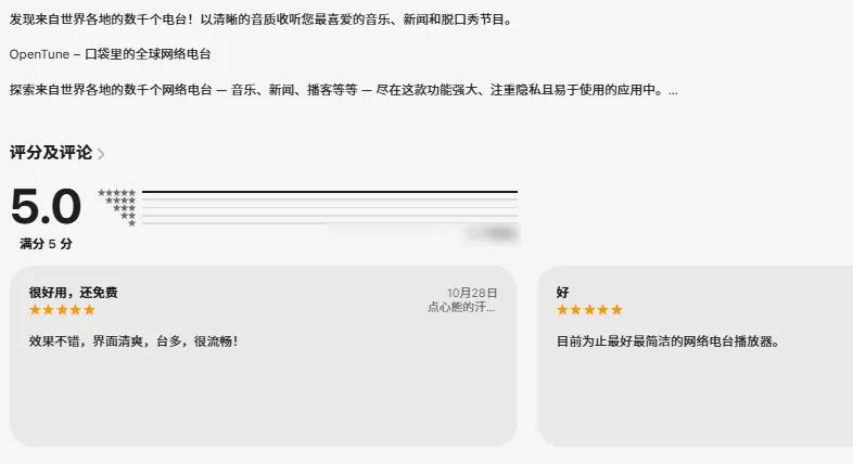 可以睡眠定时器(15-120 分钟)适合睡前收听,收藏夹和最近历史记录便于快速访问,屏蔽不想要的电台甚至整个地区,无需登录、无跟踪、无广。
