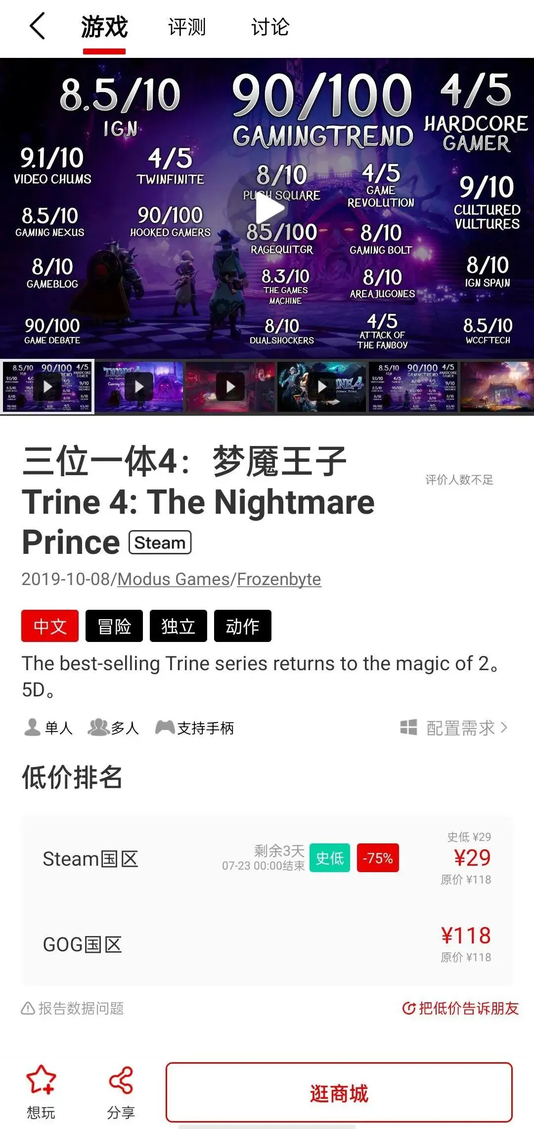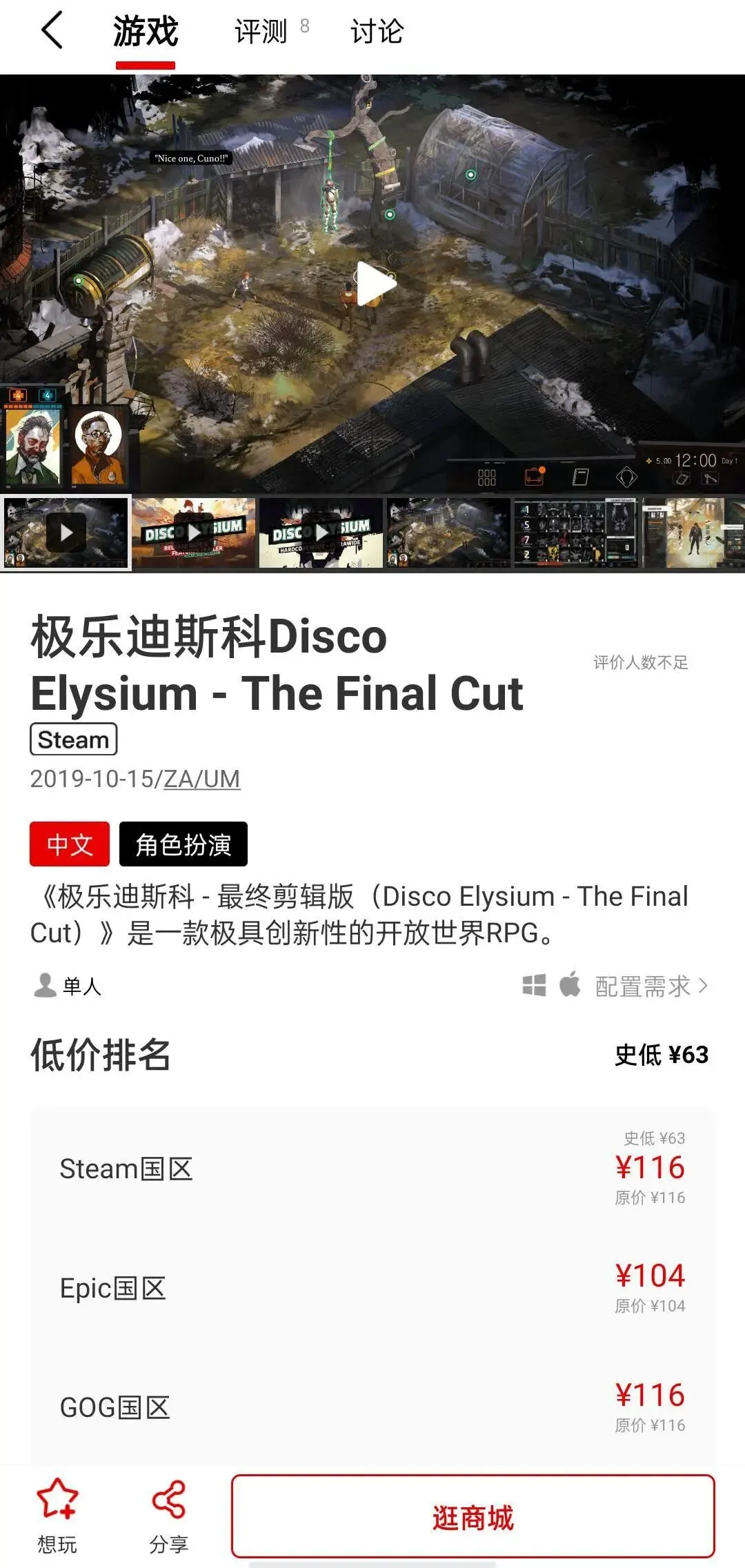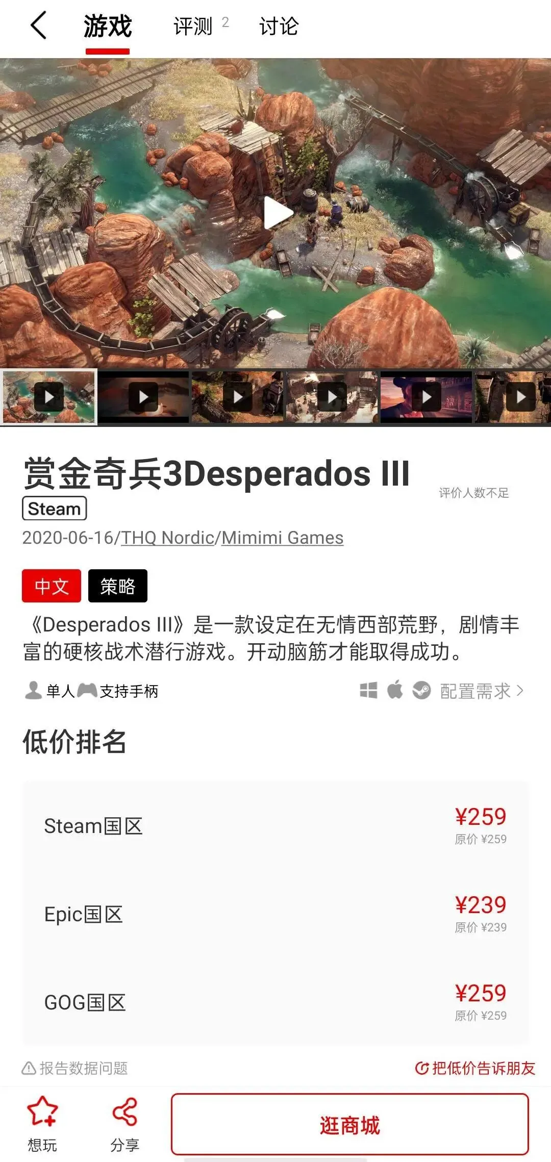 在每个登陆多平台的游戏详情页中,Jump都为游戏加入了Steam、Epic、GOG的价格信息。大家可以直接看到究竟哪个平台才是最便宜的,超级方便!