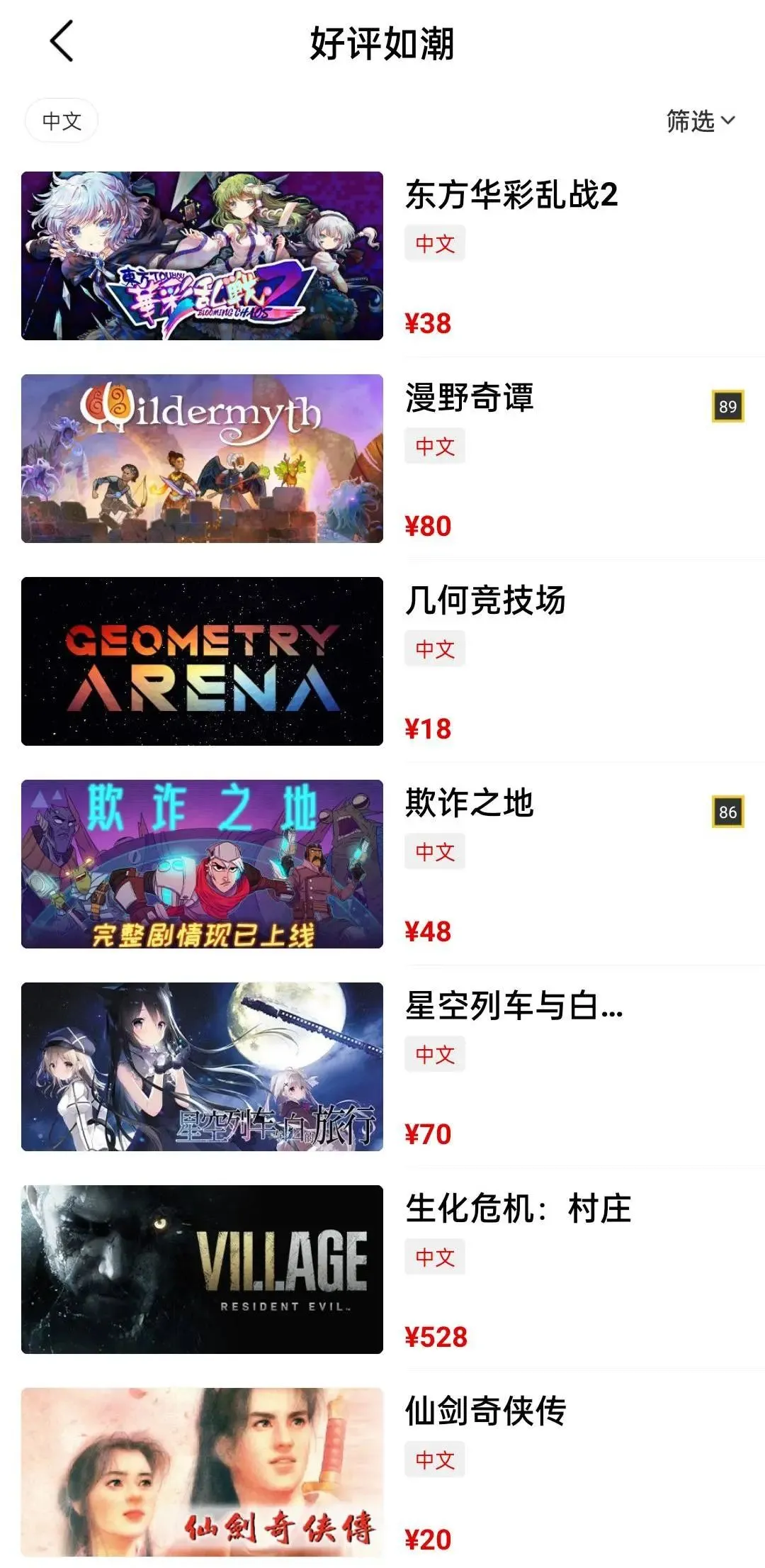 除此之外,在「好评如潮」列表中,Jump App专门整合了近期的中文评测信息,这是根据中文玩家的好评数量特意建立的榜单。