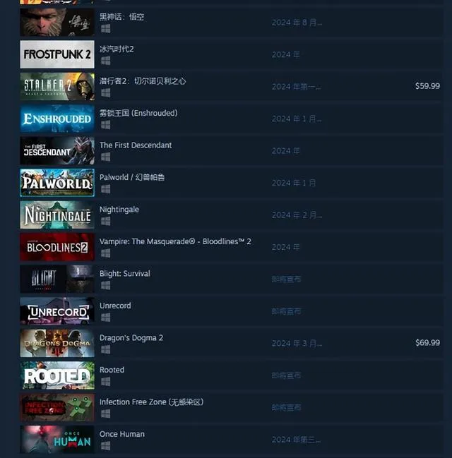 也正因如此,这款游戏的商店页面刚刚上线Steam,就被大量饱含期待的玩家们顶到了愿望单数量排行榜的前列,在国产游戏中仅次于大热的《黑神话:悟空》。