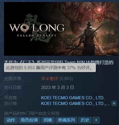 然而游戏的PC版本,发售后却华丽丽的口碑扑街了。目前《卧龙》在Steam上的好评率仅有37%,总评是连“褒贬不一”都不如的“多半差评”。