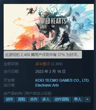 跨平台游戏的优化始终是个大问题,欧美大厂也经常马失前蹄,更别说光荣这类技术平平的日厂了。但我们还是能看到一个明显的趋势:近两年PC游戏优化翻车的情况越来越频繁,程度也越来越严重。搁以前,合格优化是对一款游戏的基本要求,放现在,却已经能拿来当成游戏的最大卖点之一。就还是先拿光荣开刀好了。在《卧龙》发售的半个月前,他们联合EA开发了一款狩猎类游戏《狂野之心》。游戏在《怪物猎人》的基础上做出了一定的创新,试玩版也收获了很多好评,照理说是很有潜力的。可结果你猜怎么着?游戏正式版发售之初,Steam同样是37%的好评率,毛病也和《卧龙》一样——优化太烂,别说爽玩,连正常体验都费劲。