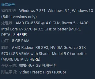 虽然“奥德赛”沿用了前作“起源”的引擎,但因为各方面都有提升,且地图比前作大了62%,所以官方给出的推荐显卡也提升到了“至少GTX 970”。