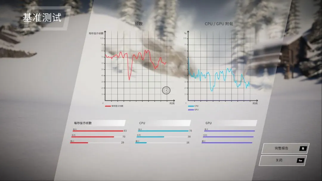 口说无凭,《Steep》也带有测试工具,测了下,结果可以说非常nice,平均帧数达到70帧,最高帧数有83帧。