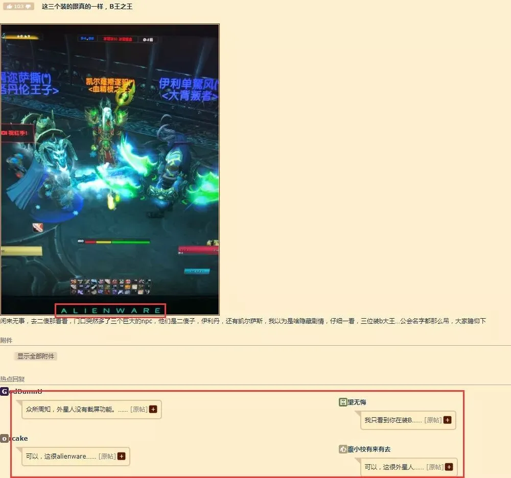 这其中一部分会来论坛发贴,虽然问着其它的事情,但不着痕迹漏出来的外星人logo,回贴的老哥也不是吃素的,立马揭穿了他想装的逼,到最后,反而娱乐效果十分充足。