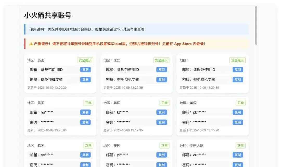 1、请不要将共享账号登陆到手机设置或iCloud里,否则会被锁机封号!只能在 App Store 内登录