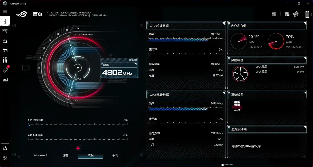 🔺内置的Armoury Crate监控应用程序可以帮助该PC调整灯光或是性能模式