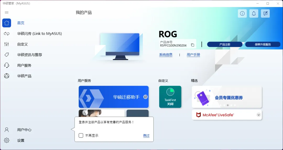 🔺华硕管家可以实现华硕闪传功能,还可快速查看驱动程序更新。