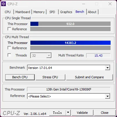 在这个环节,我们使用Chinbench R20、3DMark、CorssMark、V-ray benchmark、CPU-Z bench对ROG冰刃X游戏PC进行了CPU性能测试,同时,在测试之前,我们通过Armoury Crate调整至增强模式,从而确保ROG冰刃X游戏PC性能的完全释放(以下测试均在此模式下进行)。从结果来看搭载着英特尔酷睿i9-13900KF处理器的ROG冰刃X游戏PC确实能够满足时下高端用户,以Chinbench R20测试软件为例,英特尔酷睿i9-13900KF处理器在单线程测试与多线程测试中,分别获得了837、12450的分数。而在面向实际应用的Crossmark测试软件中,ROG冰刃X游戏PC分别得到了2385总分、2235生产率得分、2564创造性得分以及2330反应能力得分。
