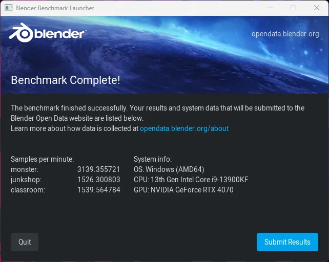 当然,拥有高性能CPU与GPU的ROG冰刃X游戏PC的发挥空间还不仅限于游戏方面,其还能加速用户的生产与创作。在该环节,我们挑选了PCMark10、Blender Opendata、V-Ray Benchmark、UL Procyon等多款软件对ROG冰刃X游戏PC进行了创作性能方面的测试。