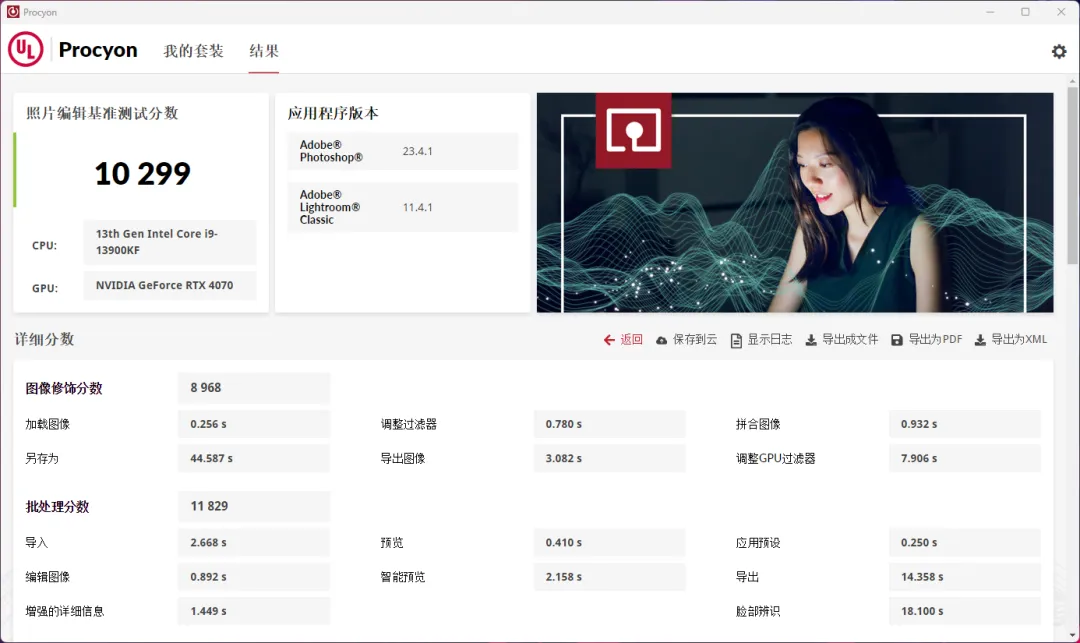 另外,在视频转码、照片编辑方面,ROG冰刃X游戏PC同样能够轻松应对UL Procyon的照片编辑测试与视频编辑测试,分别得到10299以及8751的测试成绩。