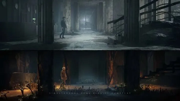 跟《寂静岭》类似,《灵媒》也存在着表里世界的设定,只是为了区分开现实与精神世界,游戏把画面分成了两半。