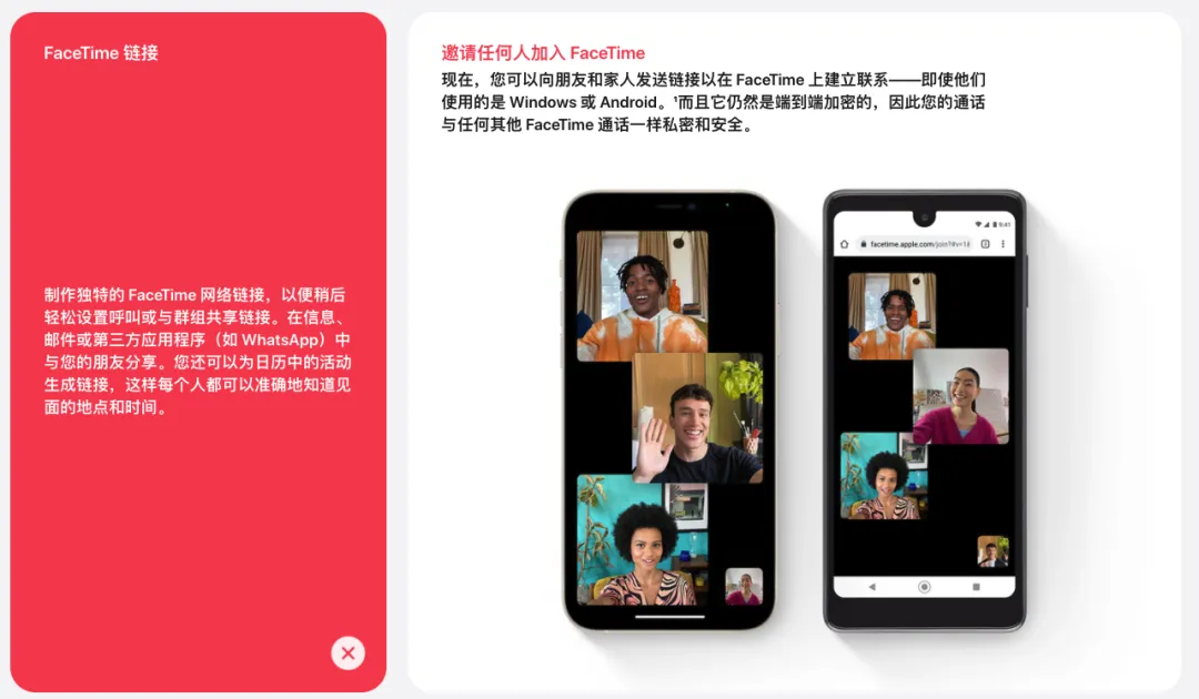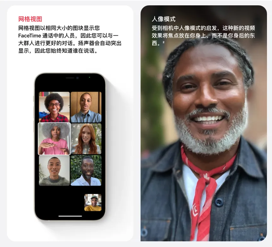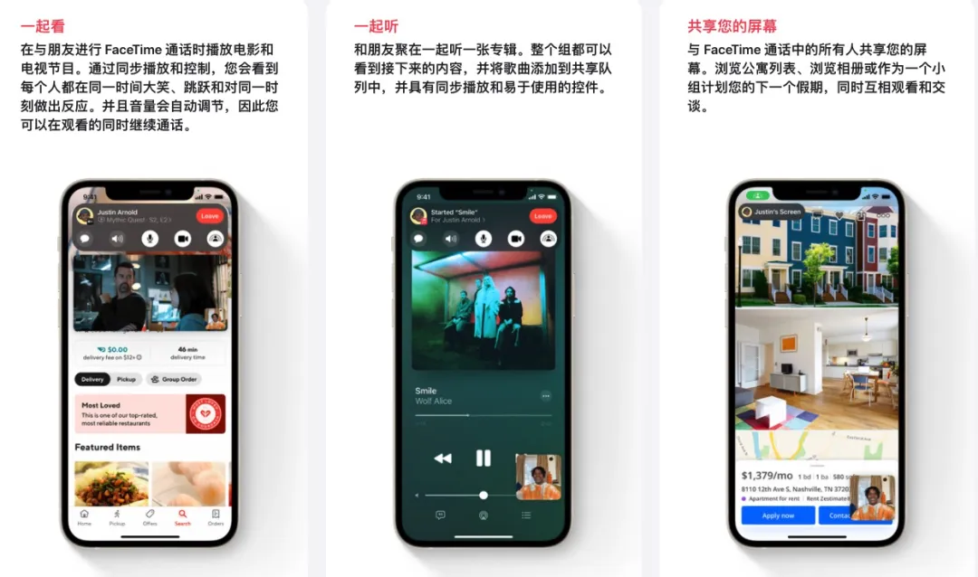 大家先别冲动,虽然预测失败,但这次发布会上,苹果依旧给我们展示了许多让人眼前一亮的新功能。iOS15 的第一项更新是 FaceTime 上线的新功能。优化升级后的 Facetime ,借助空间音频技术,使通话更加“自然、舒适”。麦克风支持语音突出,通过算法屏蔽掉背景噪音,优先处理人声,可以理解为 AirPods 里的降噪模式。视频方面,可实现类似于群聊的效果,以及视频人像背景模糊模式。同时,用户可以创建专属视频通话链接,并且支持分享到聊天、日历、邮件中。关键的来了,创建的专属视频通话链接,还支持通过电脑浏览器打开,苹果以外的安卓和 Windows 设备同样支持打开。此外,还更新了一个类似 DY 中的一起看功能“Shareplay”。允许用户之间共享正在播放的视频、音乐以及屏幕的内容。如果你正在跟好朋友一起观看视频,也可以把视频小窗口播放或者投屏到电视上,不会影响你与好友之间发送消息。苹果已经与迪斯尼+、Hulu、HBO Max、TikTok、NBA、Twitch 等内容供应商达成合作,支持观看这些平台的在线视频资源,并与好友共享。需要注意的是,上面我所说的这些功能,仅限在 Facetime 中使用,鉴于国内使用的用户并不多,咱们就不重点介绍了。消息