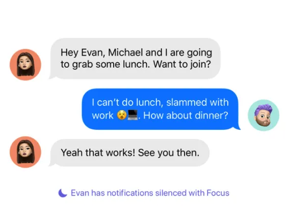 当信息中收到了多张照片,就会自动显示为拼贴画或优雅的图像堆栈,可以滑动浏览,轻点几下即可将它们保存到相册库中。Focus(专注模式)