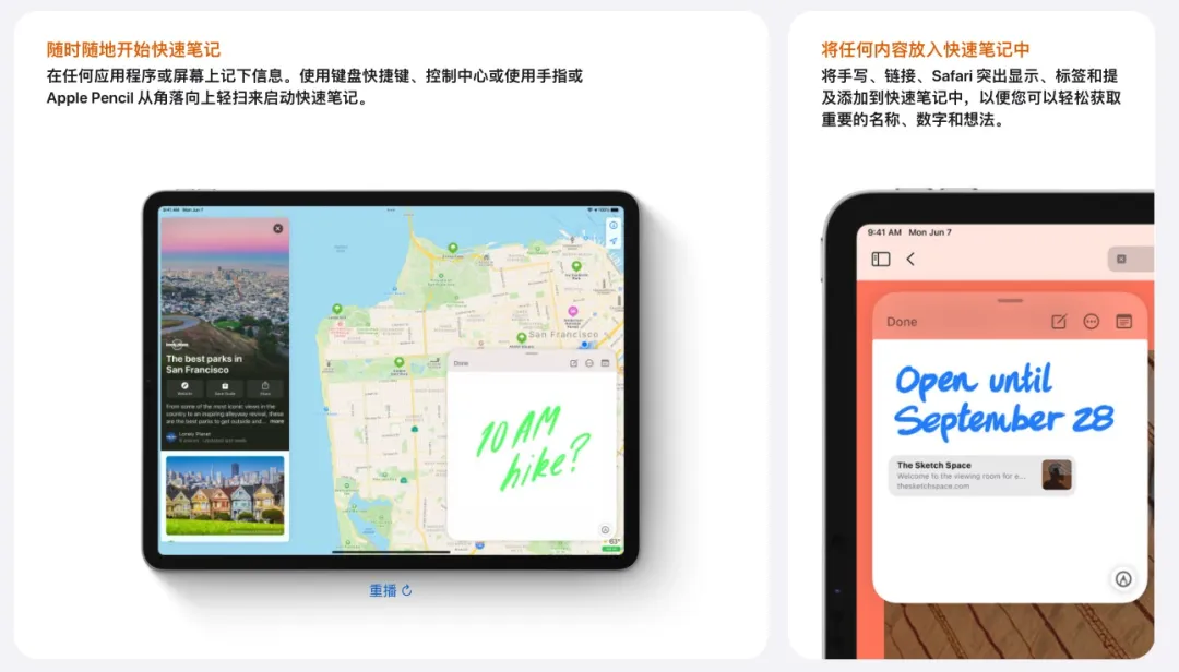 新增快速备忘录功能,通过 Apple Pencil 可从右下角可以快速唤出备忘录。