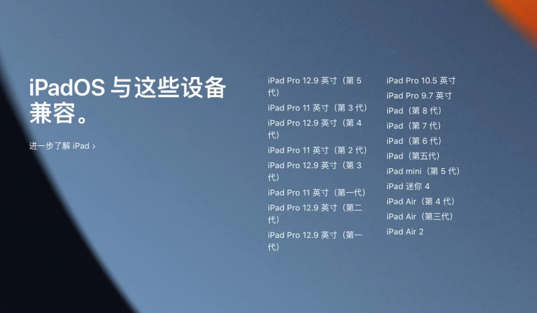 iPadOS15 支持设备: