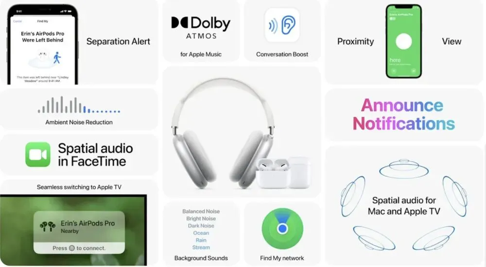 AirPods Pro 和 AirPods Max 和 AirTag 一样,支持了查找功能,利用网络或者周边的苹果产品蓝牙定位,可以整部耳机也可以单耳寻找。妈妈再也不怕我丢耳机了~
