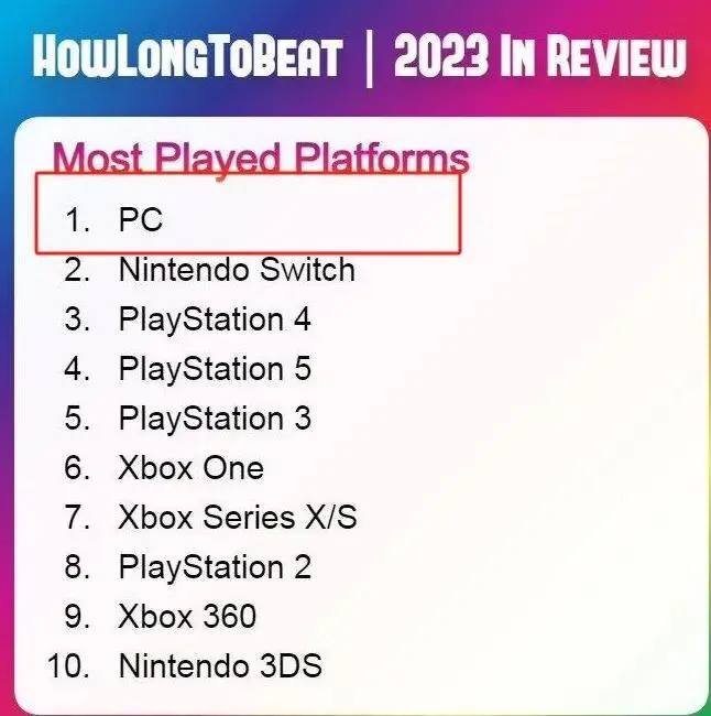 另外从一些公开数据来看,统计网站HowLongToBeat的榜单显示,2023年全球玩家选择的游戏平台数量中,PC位居第一;甚至是曾经的主机自留地的日本也迎来大批PC用户:角川Ascii综合研究所发布的PC游戏调研显示,连续三年日本PC市场规模翻倍,实现逆势增长。