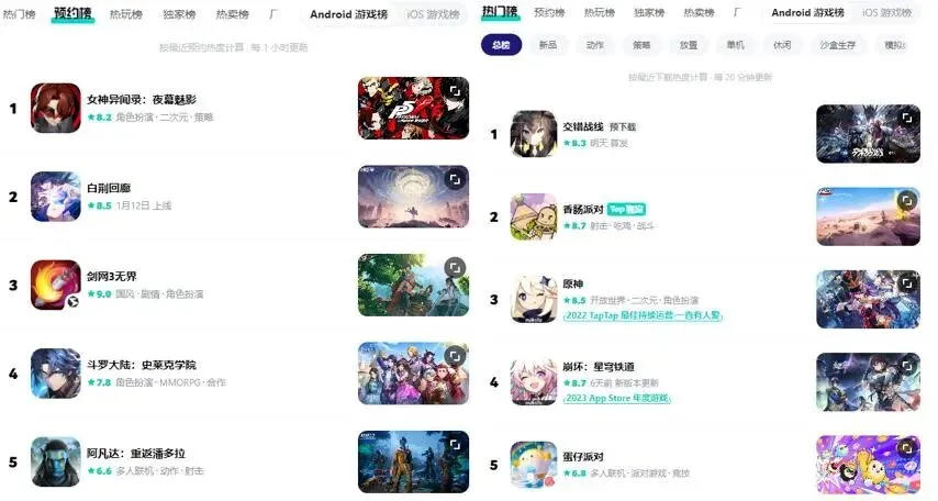 Taptap热门和预约榜,近半有PC端
