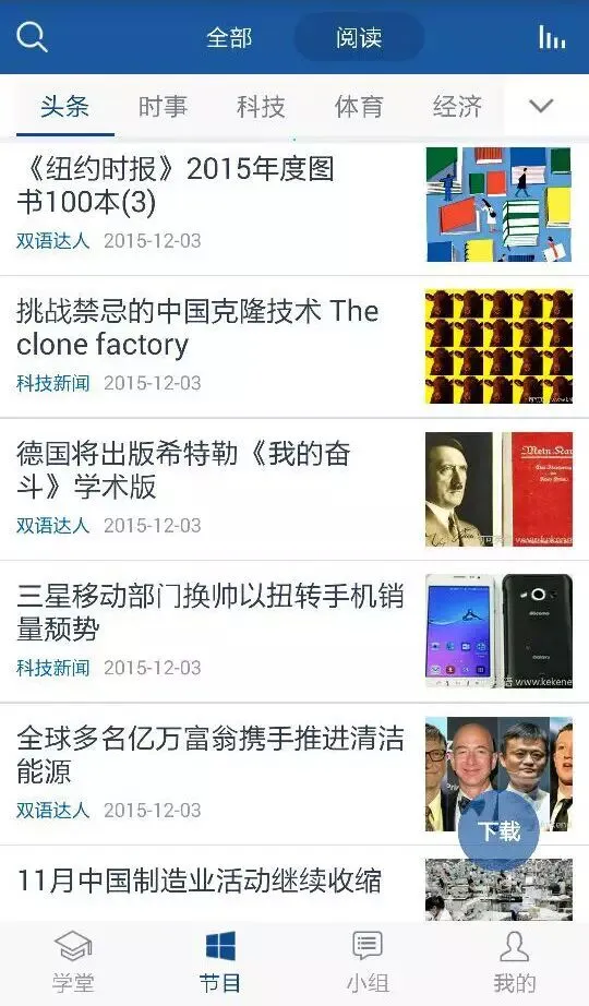 作为一款综合类英语学习APP,还可以根据自己的喜好选择不同类型的文章进行选择阅读学习。