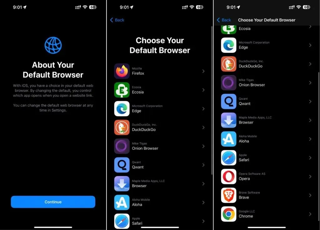 需要注意,只有 iOS 17.4 支持侧载,iPadOS 17.4 不行。另外,欧盟用户还可以更改默认浏览器了。其他地区依旧只能默认 Safari。
