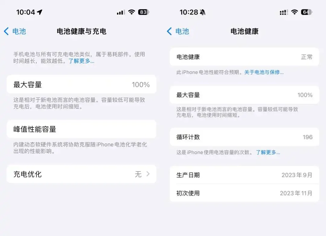 如果你是刷完整固件到 iOS 17.4,则会看到一个全新的欢迎屏幕,界面显示了你的 Apple ID 头像。iOS 17.4 新增了查看电池循环次数的功能,在设置-电池中就可以直接查看。