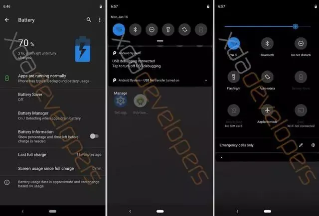 安卓 Q 还带来了黑暗模式,启用后,设置、桌面和文件等应用都会获得深灰色的色调。通知栏、快速设置面板也都会一起变色,晚上玩手机再也不怕刺瞎狗眼。