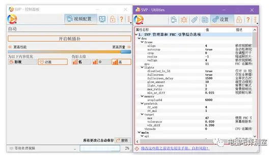 如果你没有A卡又想插帧怎么办呢?那么SVP4是你的不二选择。它支持全显卡插帧,但是因为默认参数比较激进,所以对GPU的资源消耗和CPU的消耗都比较大,不太推荐低端平台使用,真想插帧还不如200块去收张矿卡560/460呢。对于使用了高端卡的用户来说,SVP4的资源消耗就显得无所谓了。SVP4虽然有免费版,但是免费版局限性太多,不能插4K,不能10bit等,可购买完整版解决,另外网上也有不少大神专门配置的参数,想要好的效果可以自行搜索下载。
