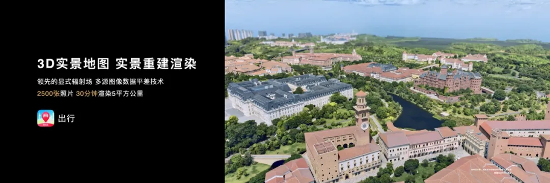 在地图能力方面,华为推出全新的3D实景地图主打实现实景重建渲染技术,开发者通过2500张照片,仅需30分钟即可快速构建出5平方公里的超精细数字世界。现场展示的3D溪村,既可以从空中俯瞰整个溪村全貌,也能随意调整视角近距离观看,建筑上的细节。同时,3D引擎实时渲染还能渲染出实时的日照光影变化,模拟雨雪等天气效果。