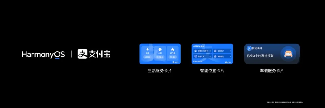 何刚表示,华为正在和支付宝探索基于HarmonyOS原子化服务的更多可能。用户将可以通过智慧搜索一步开启支付宝生活缴费的原子化服务卡片,并直接完成在线支付;而医保查询、公积金查询等便民服务也将在未来逐步上线。