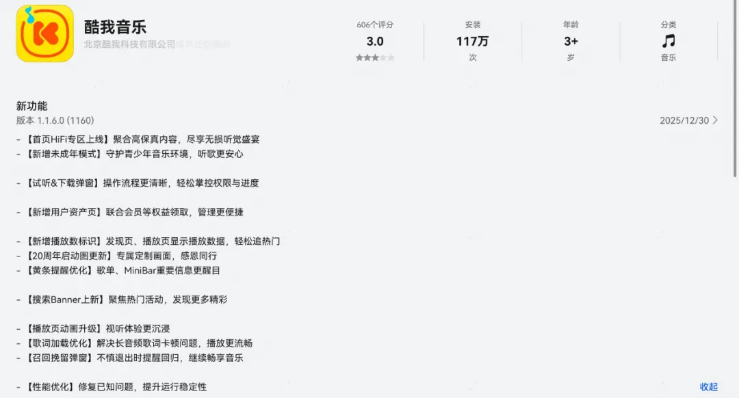 ✔【酷我音乐】鸿蒙电脑端新增未成年模式、新增用户资产页