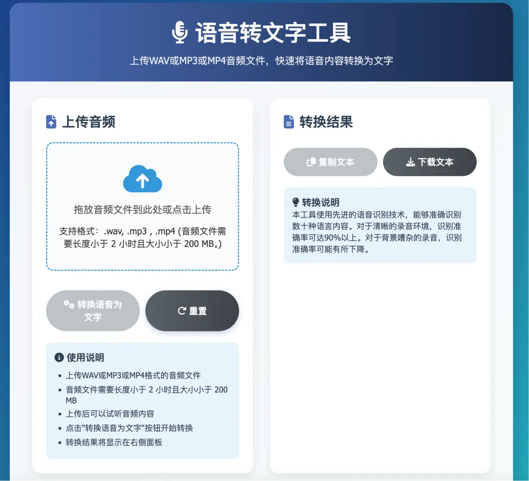 【软件推荐】语音转文字工具——上传WAV或MP3或MP4音频文件,快速将语音内容转换为文字
