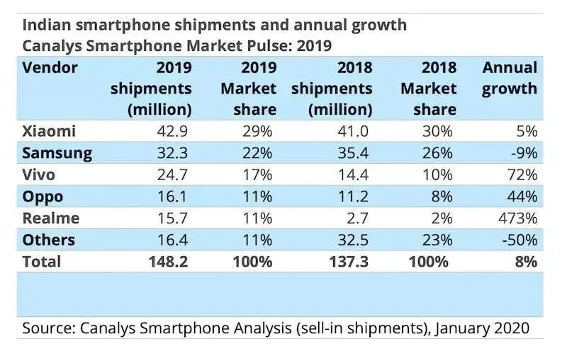 欧美地区的智能手机市场早已饱和,而中国的智能手机市场也差不多见顶,所以,近年各大小厂商都把发展目标转移至包括印度、巴西和俄罗斯等新兴市场。可是,如果说中国手机品牌的份额,在全球并不算得上是什么,但在印度市场里,GDSA 联盟里的 3 个手机厂合共占了接近 80% 的份额(上图,注意:Realme 是 OPPO 的子品牌)。